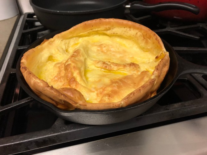 3. In a large mixing bowl, whisk together the milk, eggs, bell pepper, jalapeno, corn and cilantro (if using). Whisk in the cooled butter mixture.